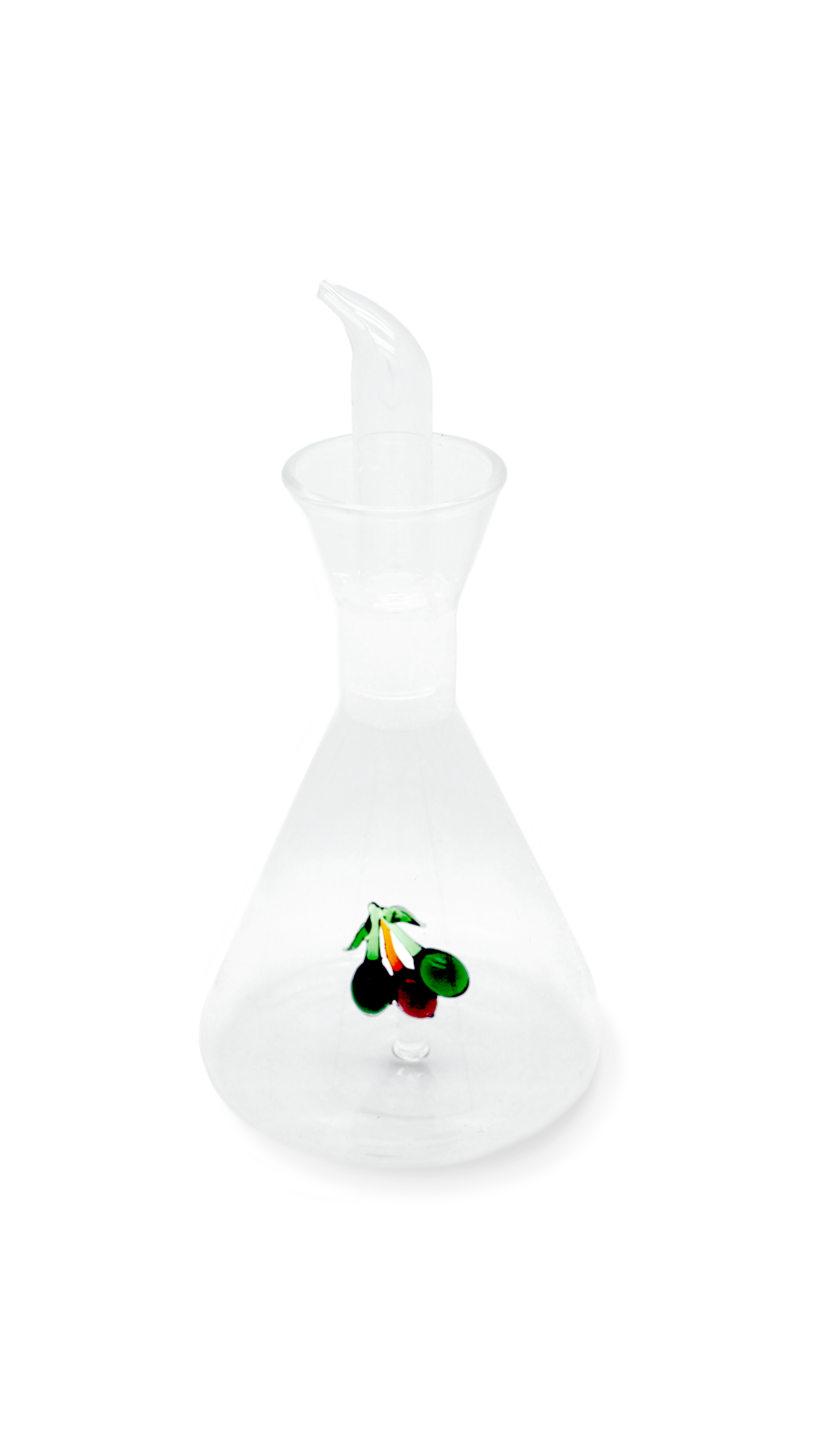 Gesmolten glas wordt in een mal geblazen en vervolgens, terwijl het nog heet is, doorboord om een unieke elliptische holte te vormen. Door dit opvallende gat ontstaat een handvat voor het uitschenken van water of wijn.