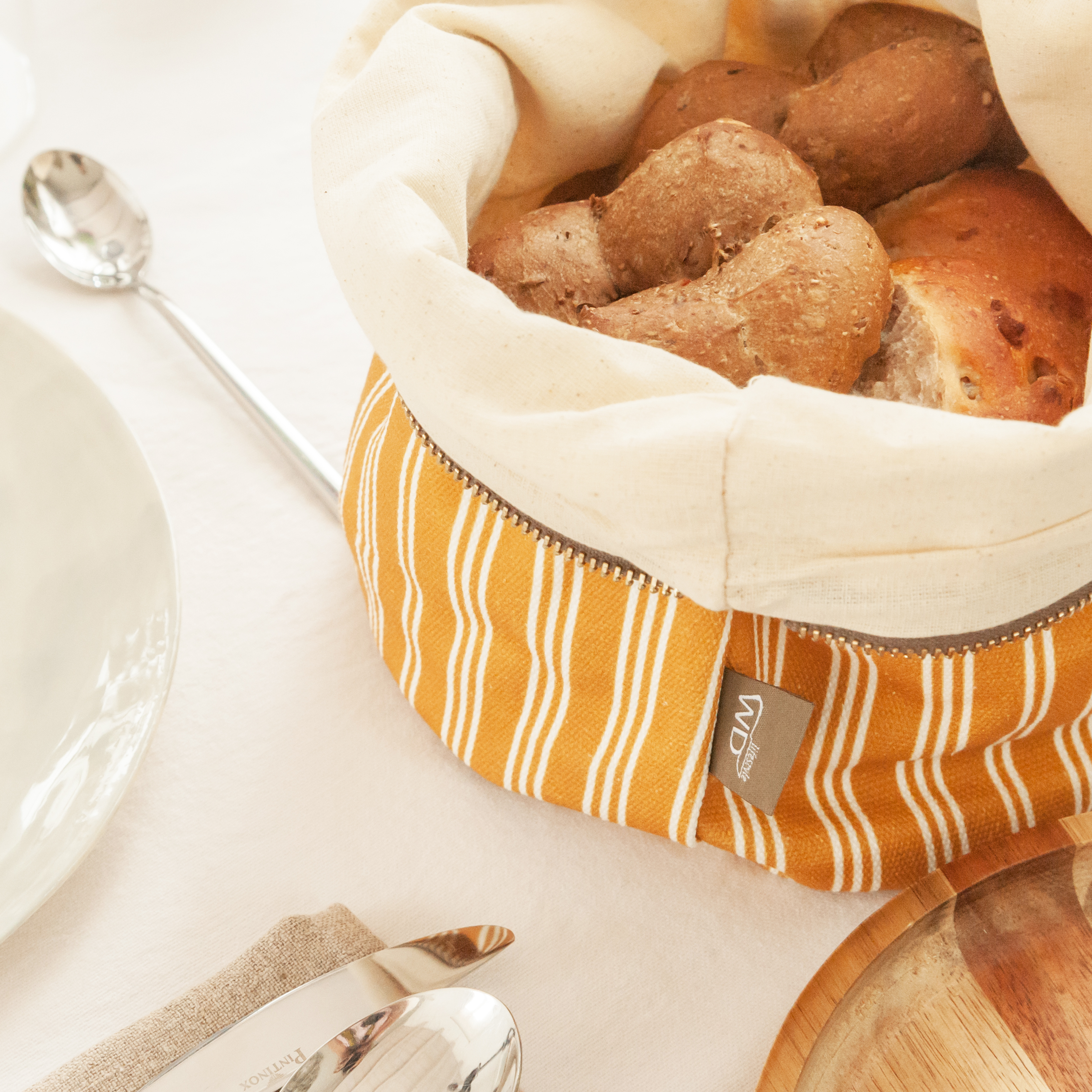 Versierd met witte streepjesstof, comfortabel en praktisch dankzij de verstelbare schouderband.