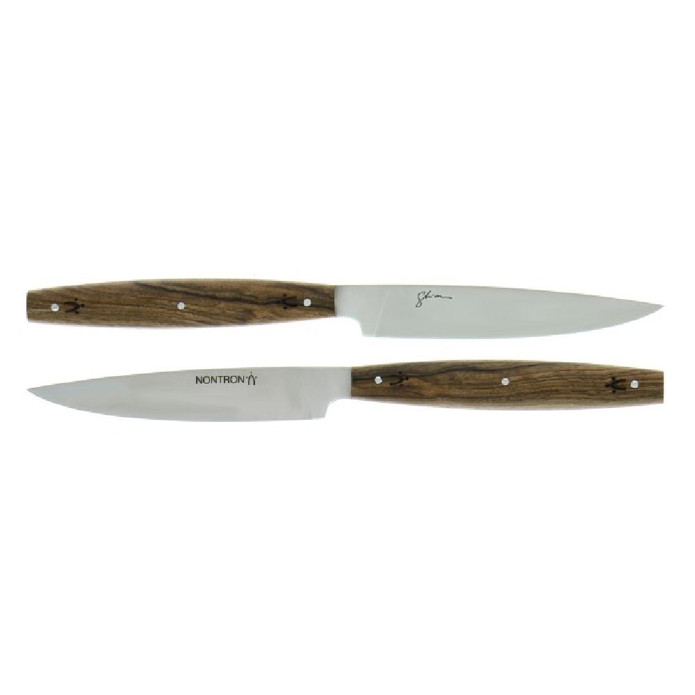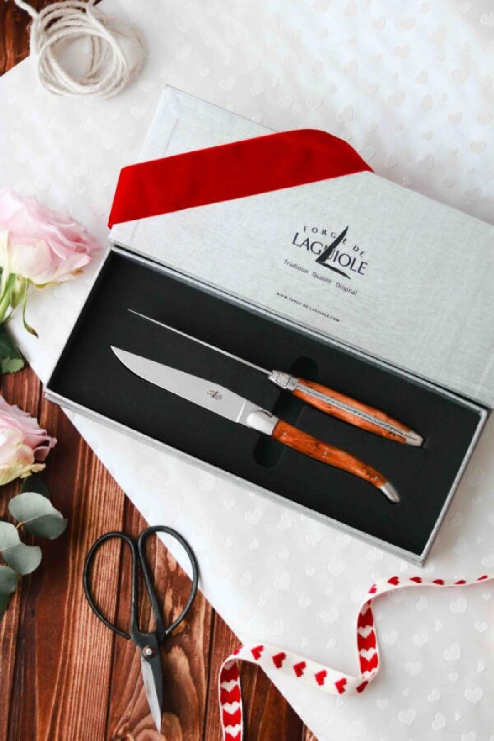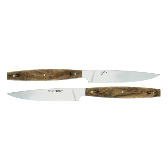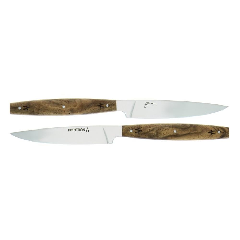 Set van 2 tafelmessen - matte afwerking - Olijfhout.
