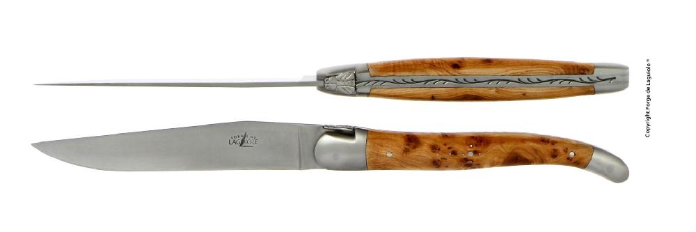 Het originele Forge de Laguiole® mes kenmerkt zich door zijn vloeiende en zijdezachte snit, die het plezier van een zorgvuldig bereide maaltijd en een met liefde en zorg gedekte tafel onderstreept.